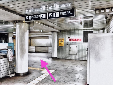 2番線が北千住方面行きホーム(7号車2番扉/先頭から7両目)