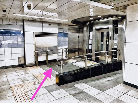 1号車4番扉(先頭から1両目)付近のエレベーターへ