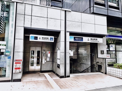 ⇒東京メトロ日比谷線 ⇒H05神谷町 ⇒乗車 ⇒中目黒方面行き車両へ
