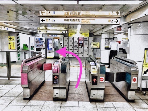 前方の改札へ