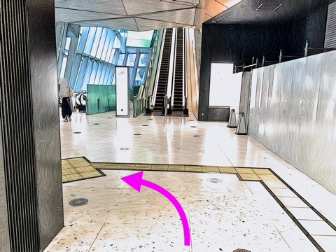 4号車2番扉(先頭から4両目)のエレベーターへ
