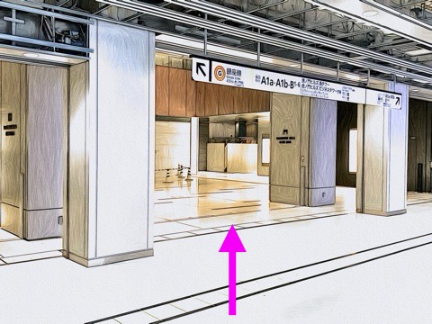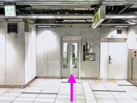 4号車2番扉(先頭から4両目)のエレベーターへ