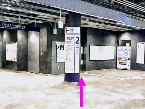 2番線が北千住方面行きホーム(4号車2番扉/先頭から4両目)