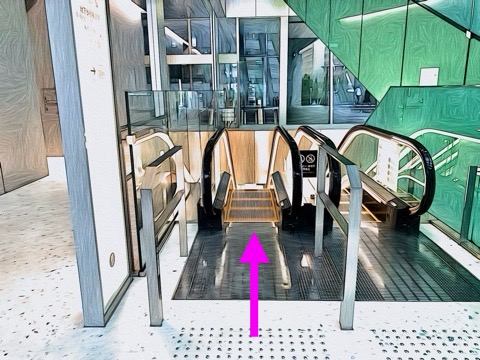 前方のエスカレーターへ