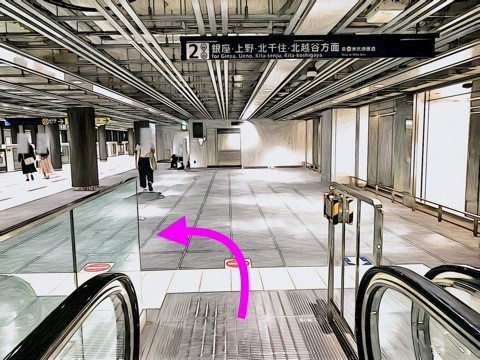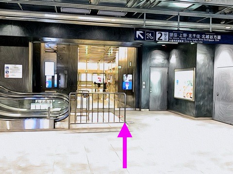 2番線が北千住方面行きホーム(5号車4番扉/先頭から5両目)