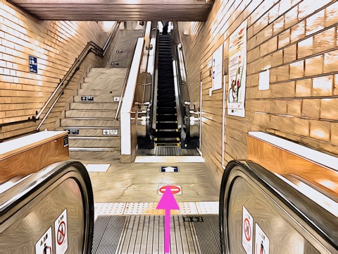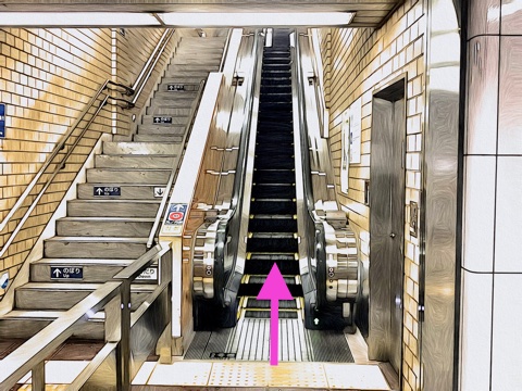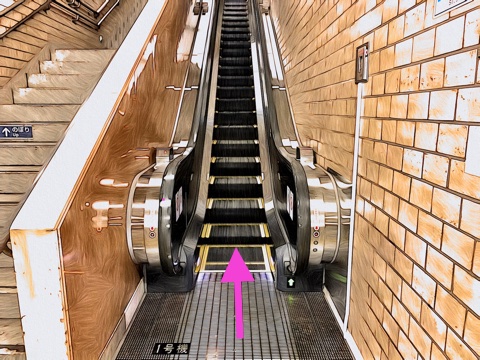 エスカレーターを降り前方のエスカレーターへ