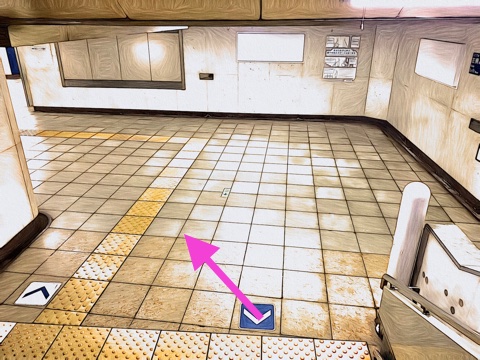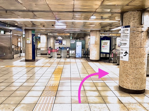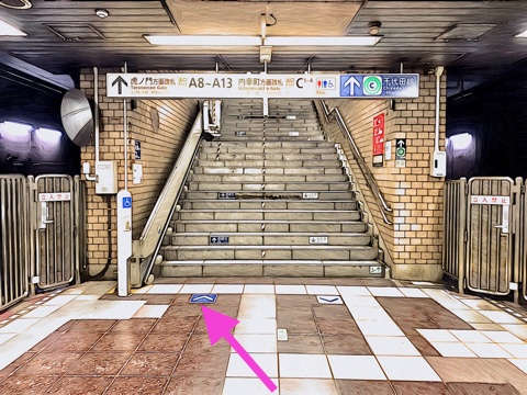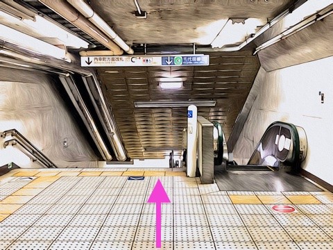 7号車4番扉(先頭から1両目)付近の階段昇降機へ