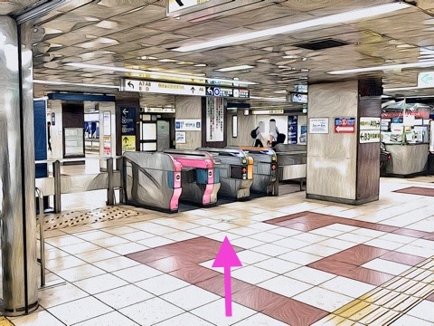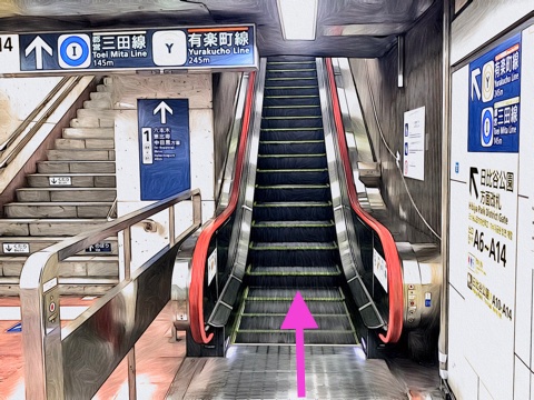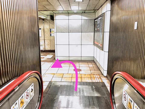 6号車2番扉(先頭から6両目)付近のエスカレーターへ
