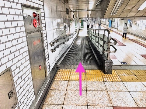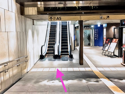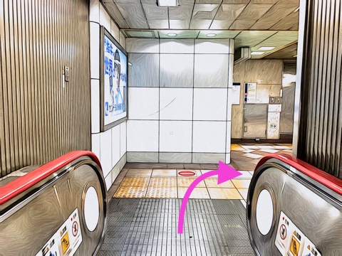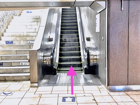 6号車4番扉(先頭から2両目)付近のエスカレーターへ
