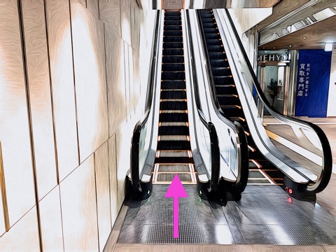 前方のエスカレーターへ