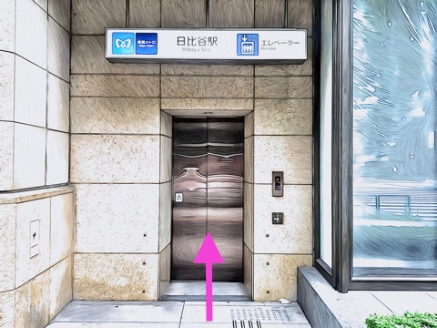 出入口A6のエレベーターへ