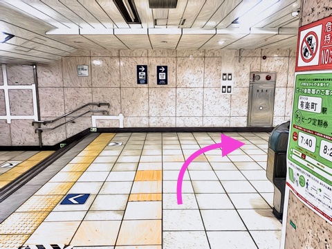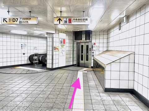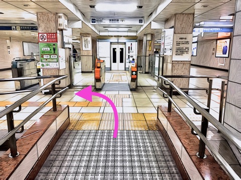 7号車4番扉(先頭から1両目)付近のエレベーターで改札階へ