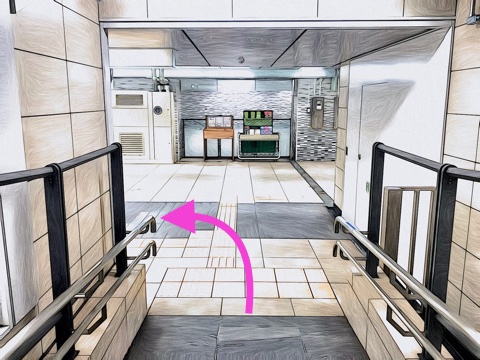 階段昇降機を降り左へ