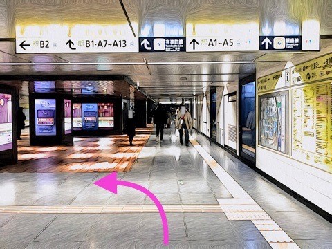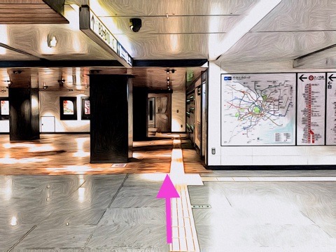 4号車2番扉(先頭から4両目)付近のエレベーターで改札階へ