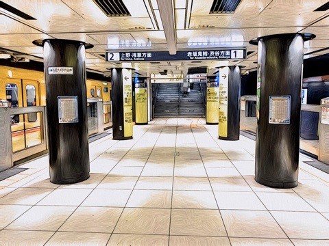 東京メトロ銀座線/G09銀座/渋谷方面行き車両へ