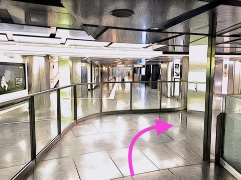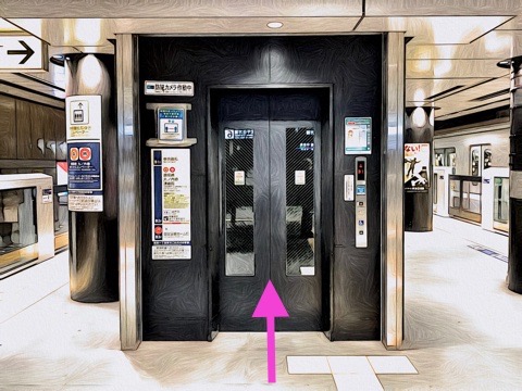 4号車2番扉(先頭から4両目)付近のエレベーターで改札階へ