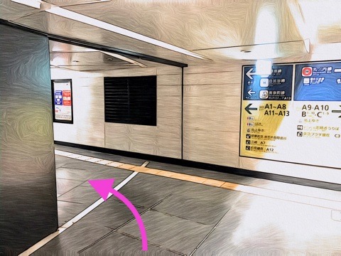1番線が渋谷方面行きホーム(6号車1番扉/先頭から6両目)