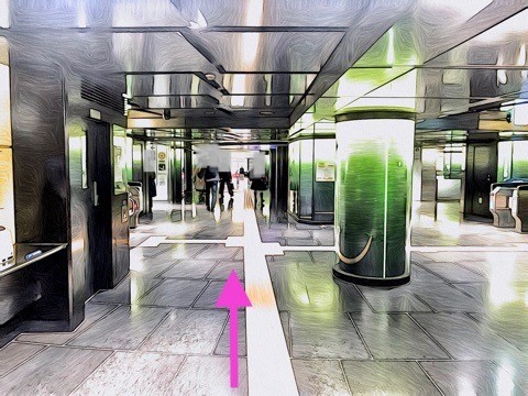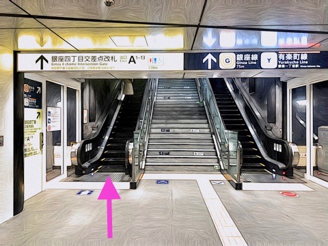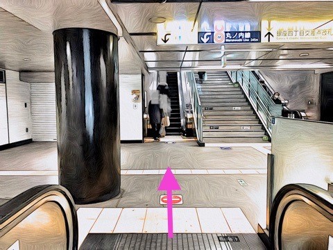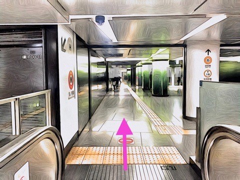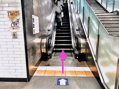 1号車1番扉(先頭から7両目)付近のエスカレーターで上の階へ