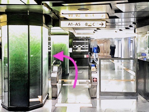 1号車1番扉(先頭から7両目)付近のエスカレーターで上の階へ