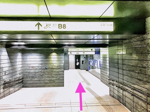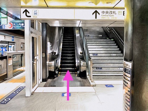 3号車1番扉(先頭から5両目)付近のエスカレーターで改札階へ