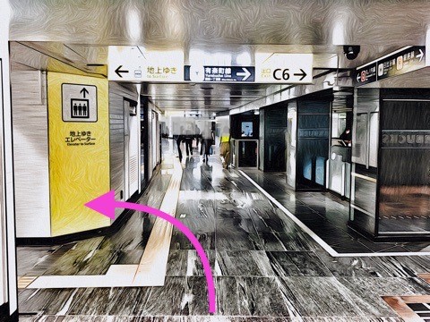 7号車4番扉(先頭から1両目)付近のエスカレーターへ