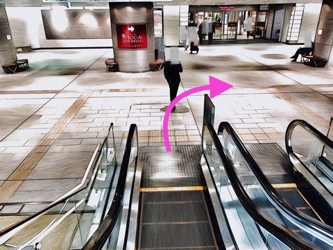左にあるエスカレーターへ