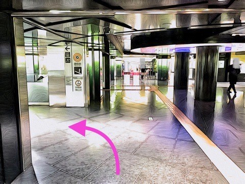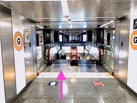 1号車1番扉(先頭から7両目)付近のエスカレーターで上の階へ