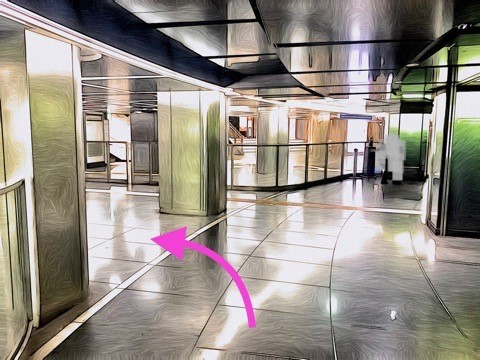 エスカレーターを降り前方へ