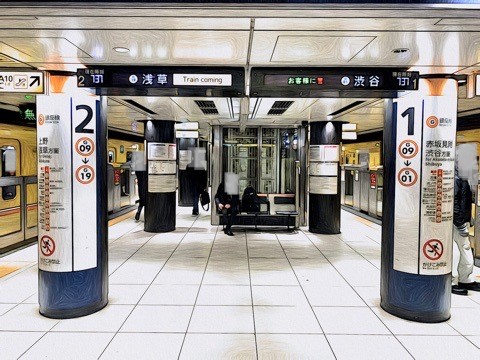 東京メトロ銀座線/G09銀座/渋谷方面行き車両へ