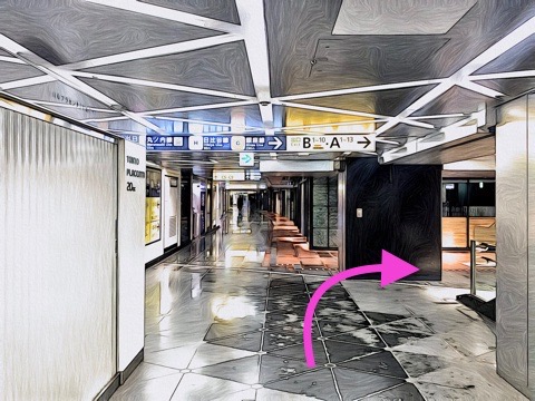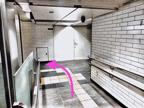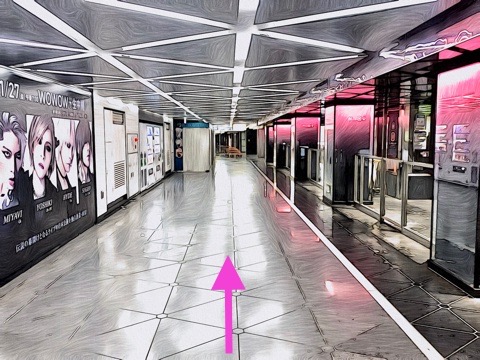 前方の改札に入らず左の通路へ