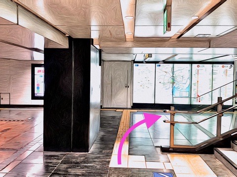 階段昇降機に乗ったまま右へ