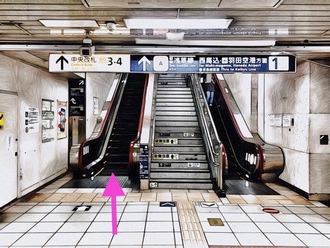 3号車3番扉(先頭から3両目)付近のエスカレーターで改札階へ