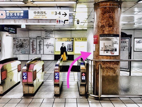 エスカレーターを降り右前方の改札へ