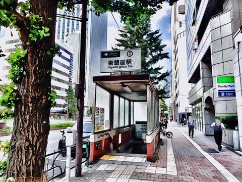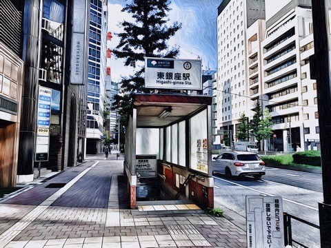 ウインズ銀座/紙パルプ会館(フェニックスプラザ)/銀座ブロッサム(中央会館)/中央区役所/築地警察署/電通築地ビル/ホテル銀座ダイエー/ホテルモントレ銀座/松屋/メルキュールホテル銀座東京