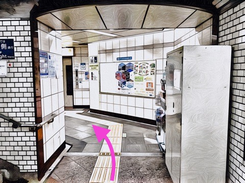 7号車3番扉(先頭から7両目)付近の改札を出る
