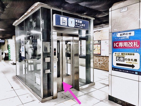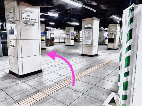 1号車1番扉(先頭から7両目)付近から出入口3・4方面へ