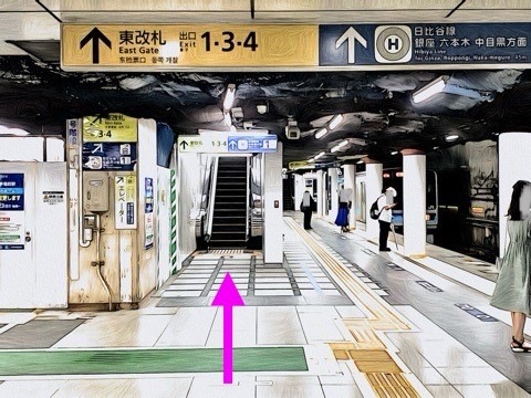 改札を越えて左前方へ