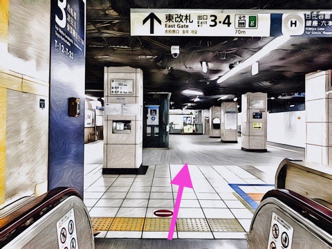 エスカレーターを降り前方へ