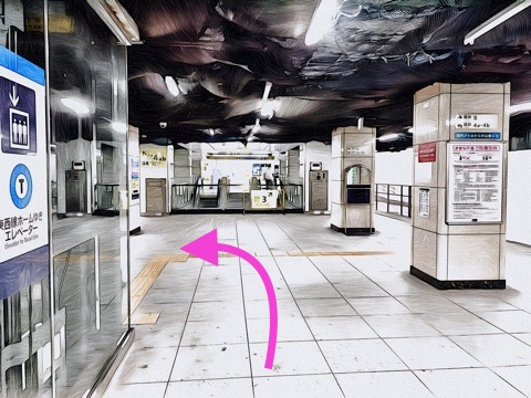 改札を出て右前方のエレベーターへ