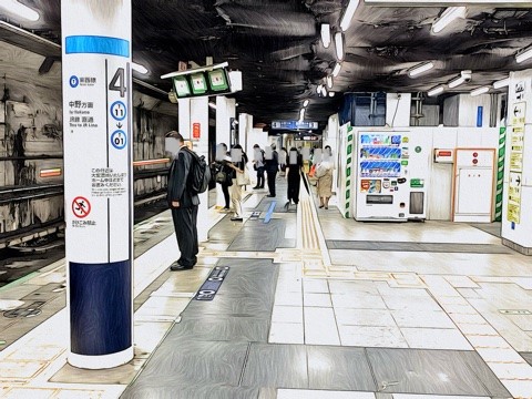 4番線が中野方面行きホーム(1号車1番扉/先頭から10両目)