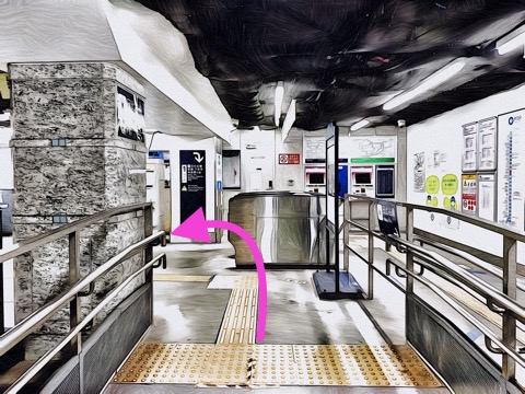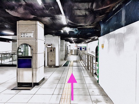 1号車1番扉(先頭から7両目)付近から出入口3・4方面へ