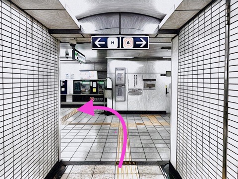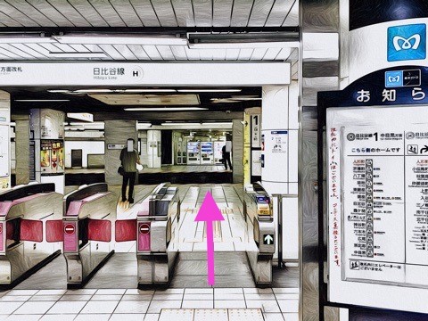 1番線が中目黒方面行きホーム(3号車1番扉/先頭から5両目)