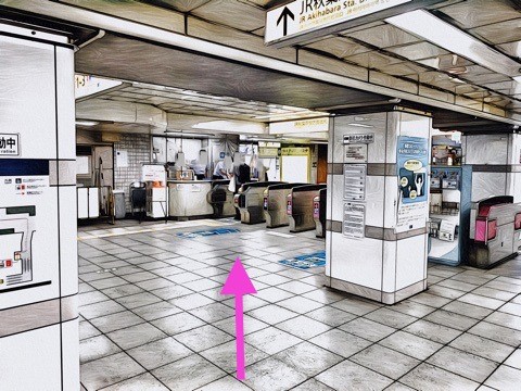 エレベーターを降り右前方の改札へ