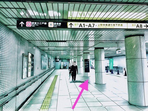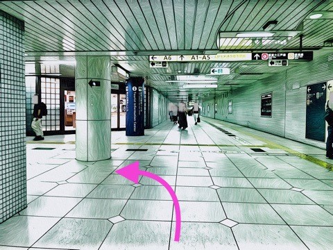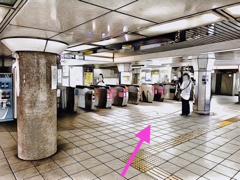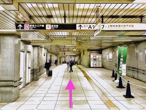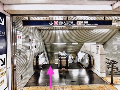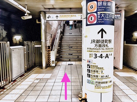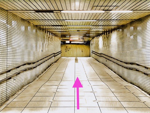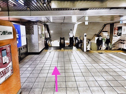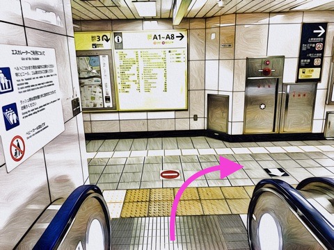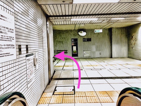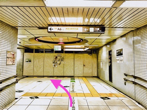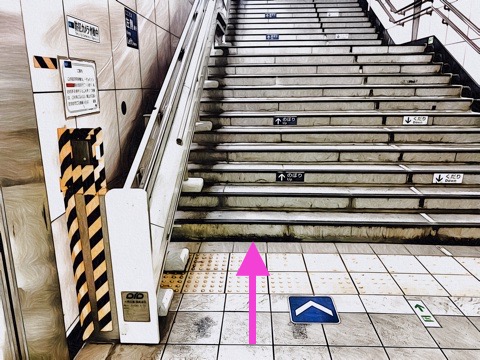 1号車1番扉(先頭から1両目)付近から階段昇降機へ