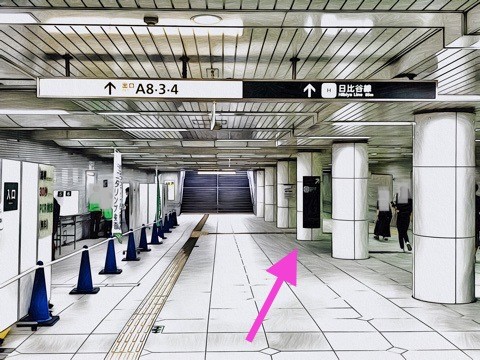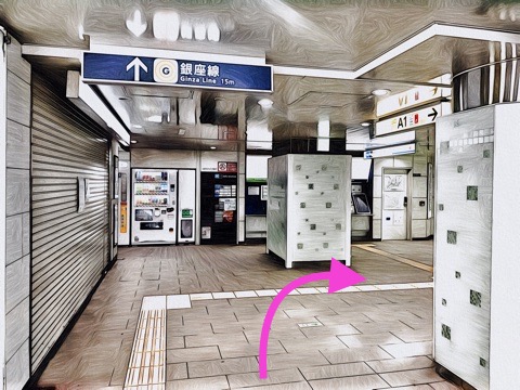 改札を入り右へ