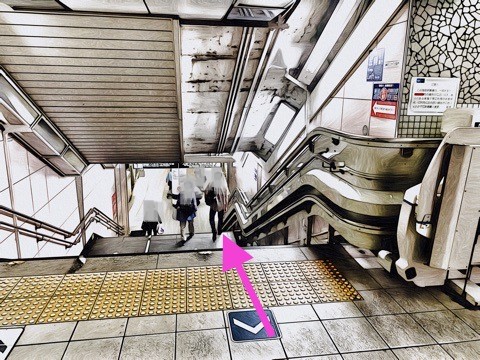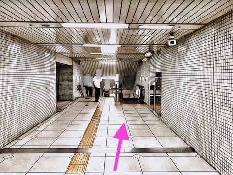 車いす対応エスカレーターを降り前方へ