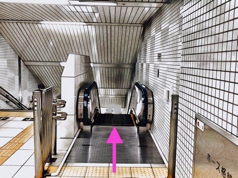 車いす対応エスカレーターで東京メトロ日比谷線改札階へ
