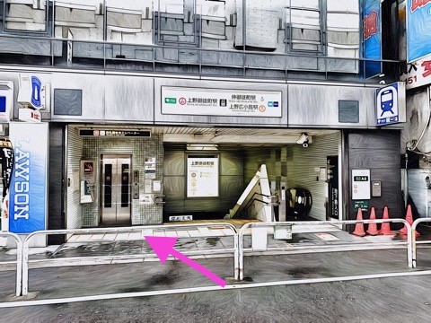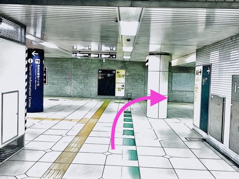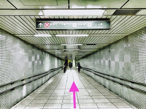 車いす対応エスカレーターで東京メトロ日比谷線改札階へ