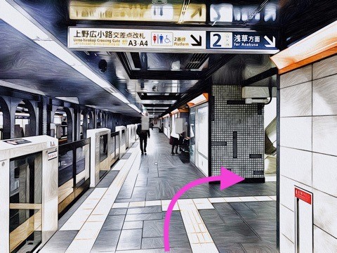 東京メトロ銀座線/G15上野広小路/浅草方面行き車両へ