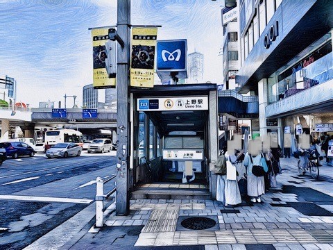 上野駅(JR線・新幹線)しのばず口 / 上野公園 / 上野動物園 / 上野の森美術館 / 国立科学博物館 / 国立西洋美術館 / 東京都美術館 / 東京文化会館 / 東京国立博物館